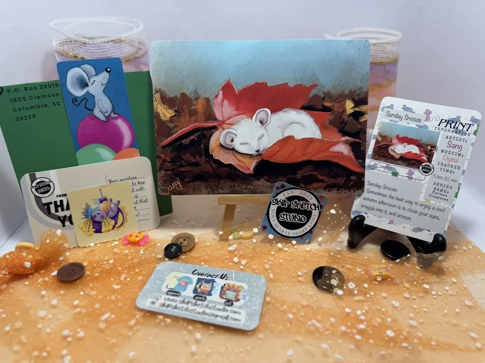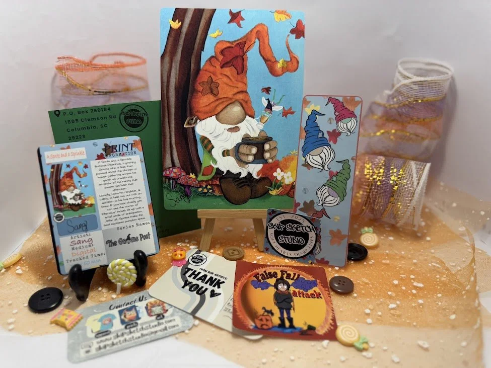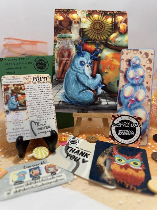 At Skip Sketch Studio, every illustration begins as a moment of wonder scribbled into a sketchbook — a quiet morning thought, a cozy creature, a spark of mystery. Our artists blend cottagecore softness with a hint of grumpy alchemist energy (the good kind), crafting art that feels warm, lived-in, and a little enchanted.