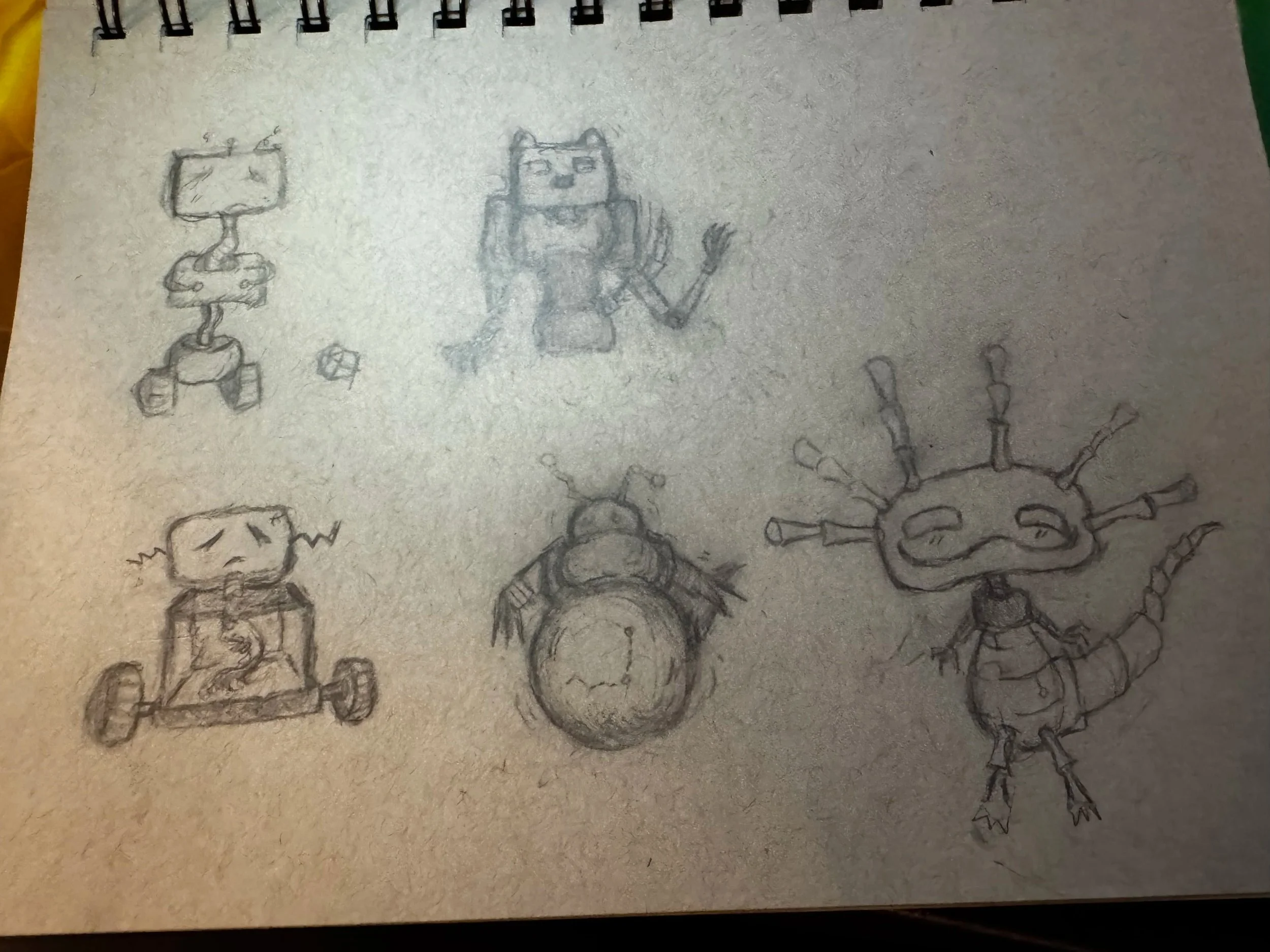 “Robots, robots, robots! Sad boi robot, axolotl, rollie boi bot, and a sad attempt at a tiger bot…thing. Robots!”