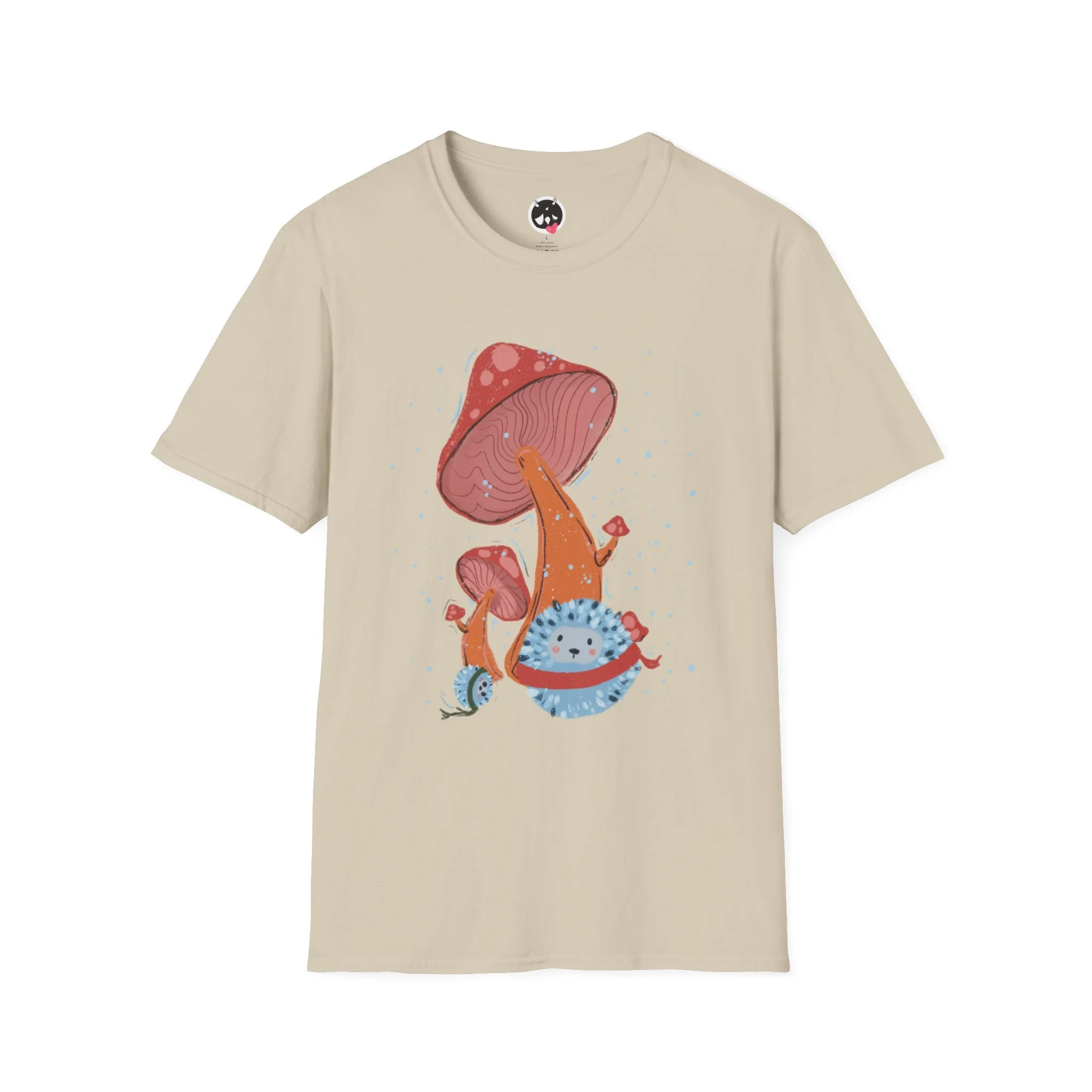 This lightweight crew tee brings a whimsical, cosmic-mushroom illustration to everyday wear. Soft, smooth ring-spun cotton drapes easily and keeps the printed colors vibrant — bright reds, soft blues, and speckled highlights pop against darker fabric. Wear it while sketching at a café, wandering local trails, or layering under a flannel for cooler evenings. The relaxed cut and ribbed neckline sit comfortably for hours, and shoulder tape keeps the shape through repeat wears. The design reads like a tiny story: oversized fungi reaching toward a starry sky, with planet-like spores drifting away. It feels playful, a little strange, and quietly adventurous — for people who collect oddities and prefer clothing that starts conversations rather than shouts them.