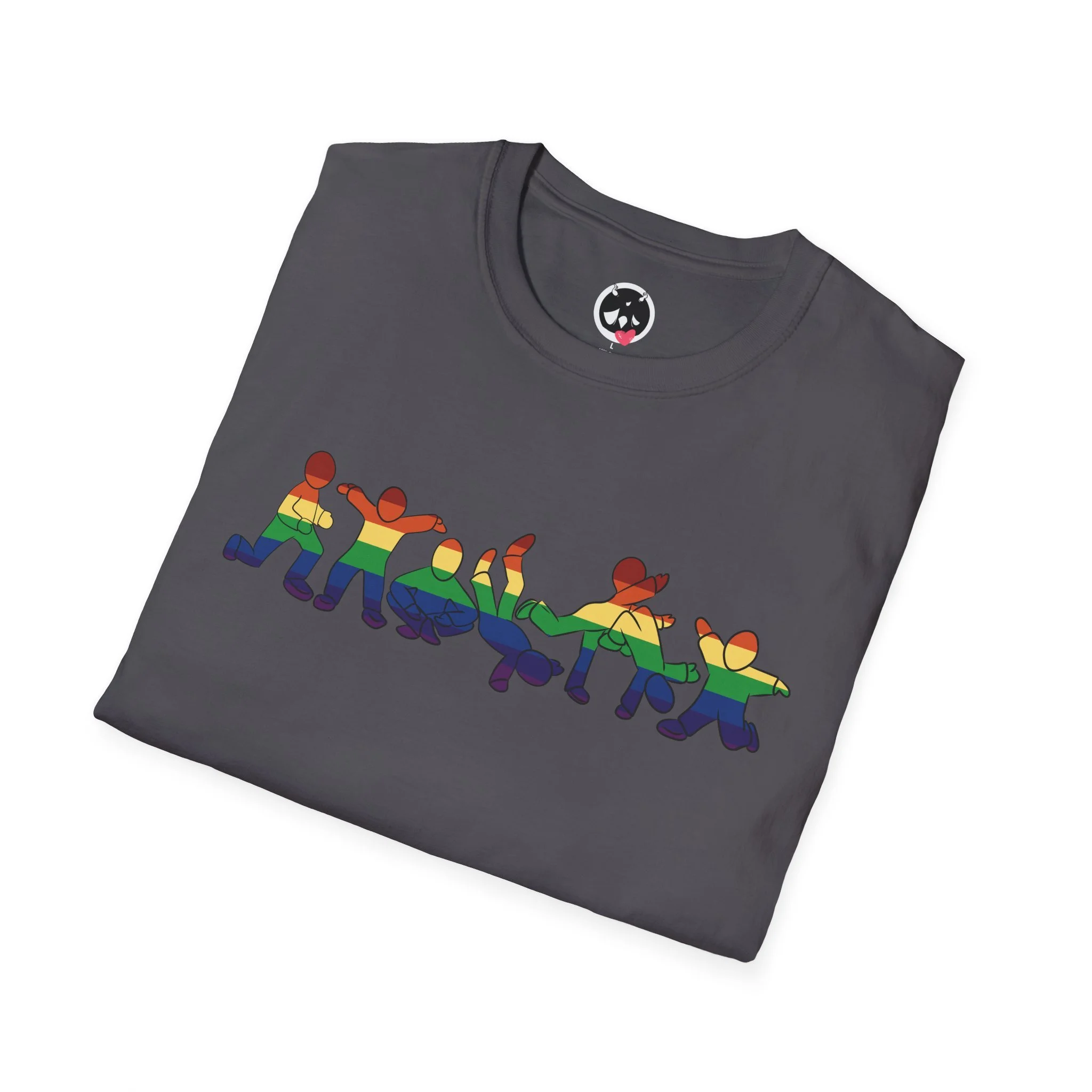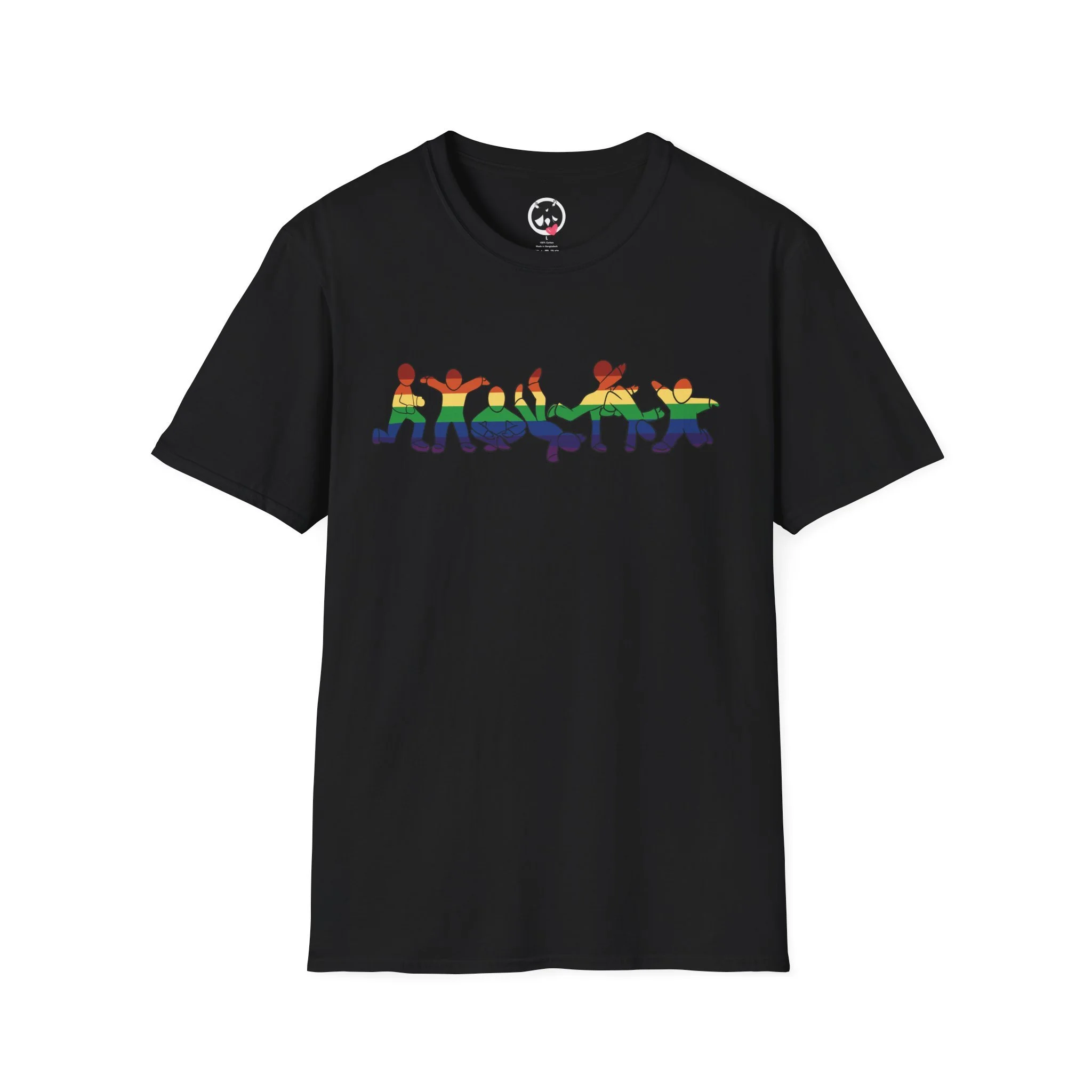 This lightweight cotton tee carries a small, playful lineup of dancing figures across the chest — bright, simplified silhouettes tha. The shirt feels soft against skin and sits neatly at the shoulders thanks to shoulder tape and a ribbed crewneck that keeps its shape. The understated, centered graphic keeps the look casual and approachable while the breathable ring-spun cotton lends an everyday ease you’ll reach for again and again.